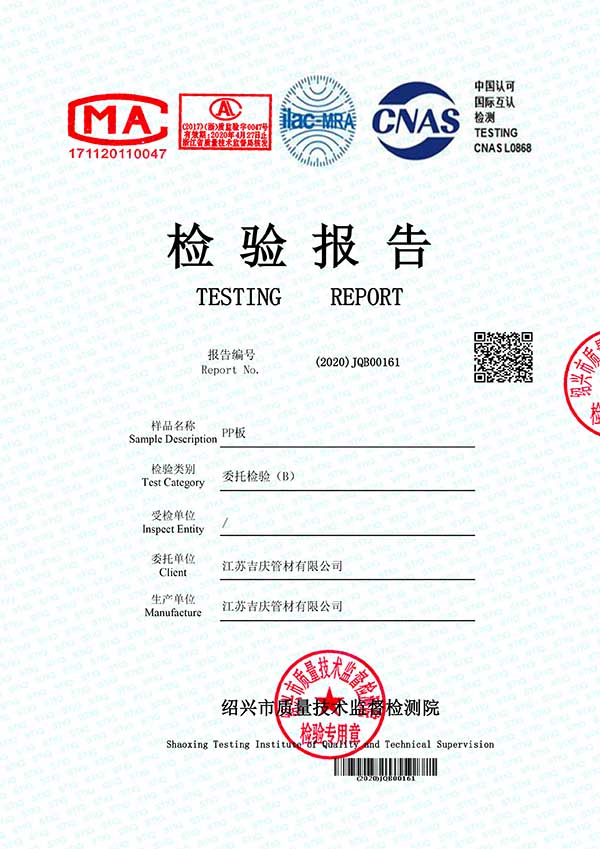 江蘇吉慶管材集團(tuán)有限公司創(chuàng)辦于2010年2月,是pp管,pp管材,pp管件,pp風(fēng)管,frpp管,frpp管材,pph管,pph管材,pph管件,pph風(fēng)管,pvdf管,pvdf管材,pp儲罐,pp板材的專業(yè)化生產(chǎn)企業(yè)。公司占地30余畝,擁有各類資產(chǎn)8000余萬元,專業(yè)技術(shù)人員20余人,管材生產(chǎn)線10條,管件生產(chǎn)線11條,具備了10000余噸各類防腐塑料制品的年生產(chǎn)能力。公司通過了ISO9001-2000質(zhì)量體系認(rèn)證,同時被評為AAA信用單位,2018年公司被評為高新技術(shù)企業(yè),此后陸續(xù)取得安全生產(chǎn)管理證書等榮譽(yù)。公司位于水上花園城市----江蘇省揚(yáng)中市八橋鎮(zhèn)永福路18號,交通便捷,可直接導(dǎo)航至公司園區(qū)內(nèi)。公司全體員工將以高度的敬業(yè)精神,嚴(yán)格的質(zhì)量控制理念和科學(xué)的管理方法,及時周到的服務(wù),竭力為我國塑料管道在各領(lǐng)域的推廣和應(yīng)用作出更大的貢獻(xiàn)!